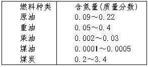 3)、燃料性质对燃料NOx的影响。燃料性质对氮氧化物排放的影响是非常重要的,这种影响是各种因素联合作用的结果,其体现方式也是多方面的,如总的NOx排放量、燃料氮的转化率,对温度、脱硫剂、环境氧浓度的敏感性等。不同种类燃料的含氮量不同(见表1)。