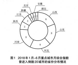 今年6月,生态环境部公布空气质量状况新排名,重点城市从74城市扩展到169个。涉及区域包括京津冀及周边55个城市,长三角地区41个城市,汾渭平原1 1个城市,成渝地区16个城市,长江中游城市群22个城市,珠三角区域9个城市,其他省会城市和计划单列市15个城市。今年上半年,169个重点城市综合指数排名倒数20城市的省份分布如图1所示。