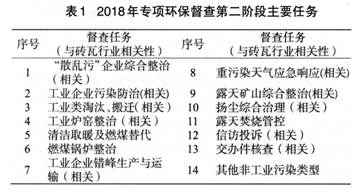 笔者参加了第二阶段第8轮强化督查工作,深入了解到督查任务包括14方面内容,其中10项督查内容和砖瓦行业相关,详细情况见表1。