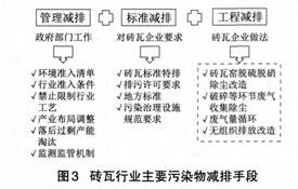 砖瓦行业的污染物减排包括政府部门的管理减排、对砖瓦企业提出更高要求的标准减排和砖瓦企业要做的工程减排,具体污染物减排手段如图3所示。