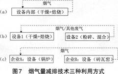 通过烟气循环和梯度利用技术减少烟气量,实现污染物的总量减排,这种方式类似水的循环利用和多级利用。该技术包括三方面内容,分别是设备内部的、设备之间的和企业之间的烟气循环和梯度利用。