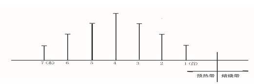 大中平顶断面隧道焙烧窑,按码坯高度为12--16层砖坯设计,一般窑炉的码坯有效断面高度1.4—1.9米,扁长的窑内横断面不会产生较大的上下温差,只要操作方法得当,就不会产生砖坯周边或底部制品欠火的问题。因此,可以采取大部分焙烧带处于负压烧成状态,即把“0压”点可以稳定控制在焙烧带后部。例如,当前设计的焙烧窑炉热工设备的焙烧区域,通常为11车位的后半部至24车位,为此则“0压”点可以稳定控制在14车位至16车位的范围内。“ 0压”点实际上是一个零压面,确定零压点以在设定的拟控制范围内的加煤口能观察到“0压”点为原则,不宜通过窑墙的观火孔来确定。切忌“0压”点移到冷却带而发生抽热倒流事故。