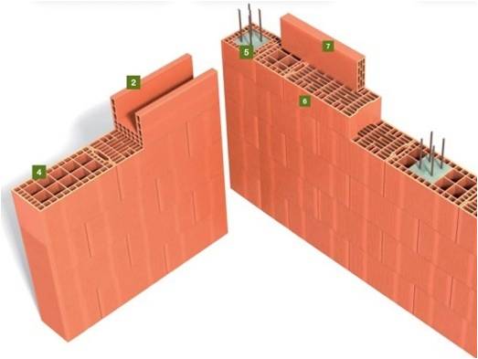 热传导不只是通过砌块或砖进行,同时也通过柱,连接梁,砂浆,过梁,楼板端头等,所有都是大的热传导体(由钢筋混凝土制作),这样就要求混凝土包裹进砖中:“全部为红色”,从外面看不到混凝土 。