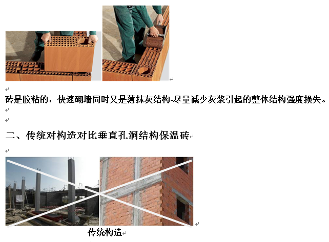 使用垂直孔洞/结构(荷载)/保温砖砌筑的墙体(上图中)