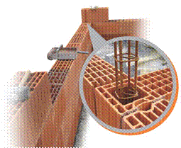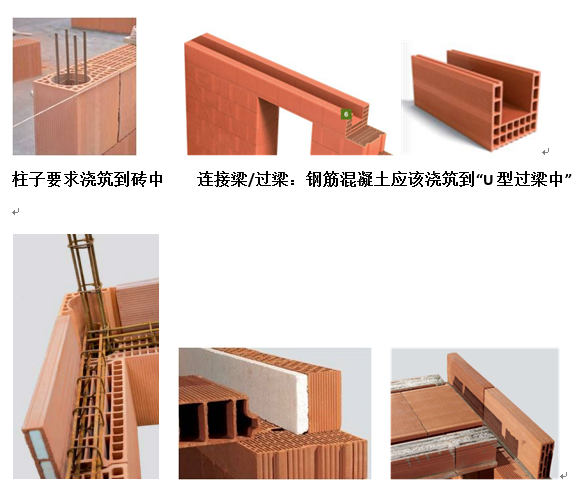 由于使用新型的砌块,注意与中国目前生产的砌块不同,可以将建筑结构钢筋直接浇筑到“柱砖”中,这种“柱砖”是垂直孔洞结构保温砖中的一种配砖特征之一。众所周知砖砌筑结构国家是有严格要求的每2米要有一个构造柱(因为砖块是最碎片化的建材,必须保证砌筑体的一致性(墙体的一致性)。所以必要的构造柱是我们国家标准中要求的。