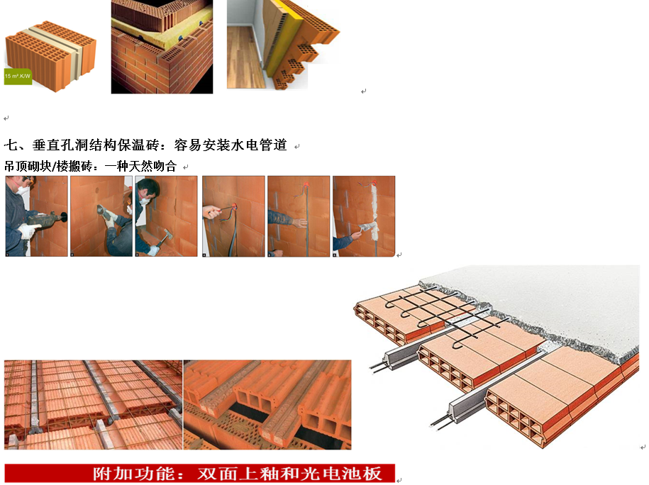 垂直孔洞结构保温砖:节省75%的钢筋混凝土,所有都浇筑在砖中,无需支模 。