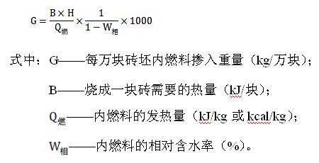 确定烧成每万块砖需要在砖中加入多少公斤燃料,通常采用下列公式进行计算: