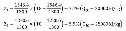 每一万块砖坯的体积约18 m3,若内燃料的密度为1300kg/m3,内燃料1的发热量为20000kJ/kg,内燃料2的发热量为25080kJ/kg,则前述计算中内燃料与原料的体积比为: