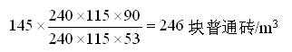 例如,某轮窑焙烧KP1型空心砖(240×115×90mm)时,每1m3焙烧道内码放145块,则该种空心砖的码窑密度为: