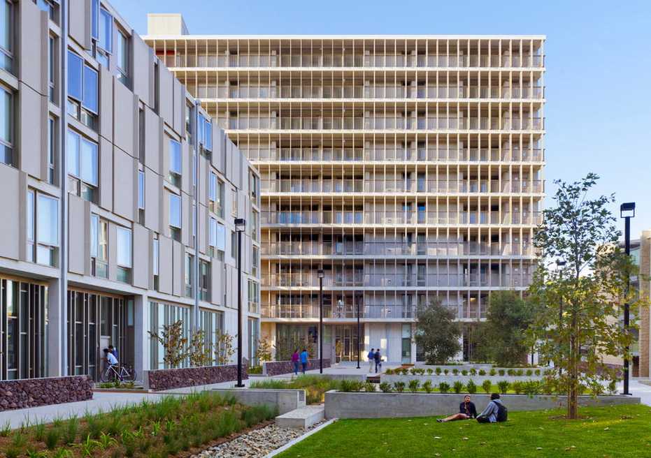基林公寓,以科学家Charles D. Keelin的名字命名,位于美国加州大学圣地亚哥校区西南角,可俯瞰该地区的海岸峭壁。利用其沿海的地理位置,建筑设计采用了自然加热和冷却方式。建筑整体及窗户的设计使得建筑可以通过海风调节室内温度,室内庭院可以最大程度的吸收日光照射,提高朝阳房间的温度。因此,建筑内部完全可以不使用空调设施。