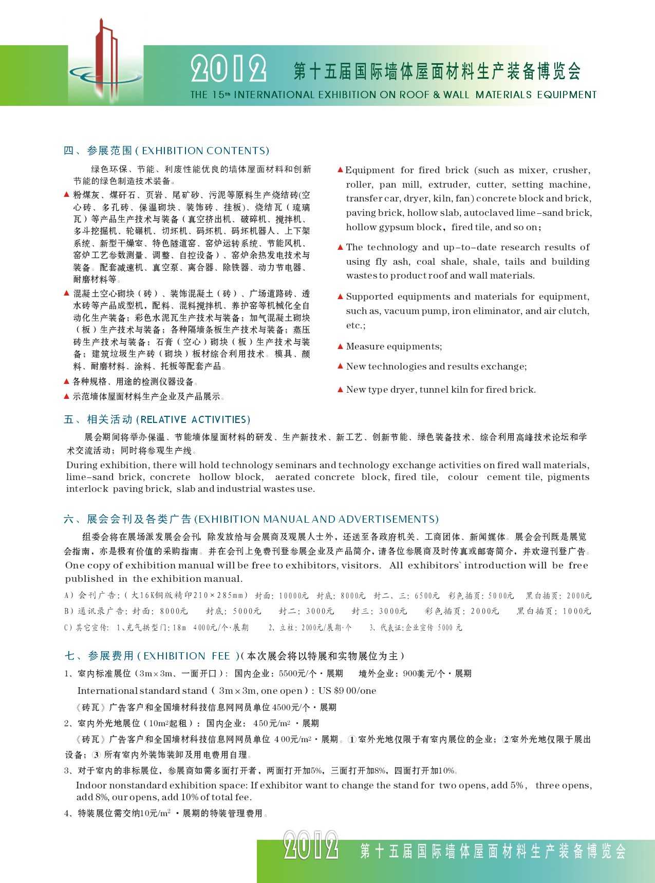 • 关于成都举办的“2012 第十五届国际墙体屋面材料生产装备博览会”的参展指南