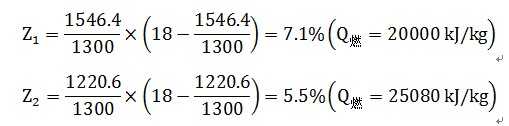 每一万块砖坯的体积约18 m3,若内燃料的密度为1300kg/m3内燃料1的发热量为20000kJ/kg,内燃料2的发热量为25080kJ/kg则前述计算中内燃料与原料的体积比为: