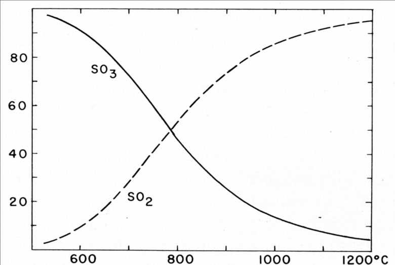 7:在有实际意义的温度范围内SO2SO3的体积百分率,假定氧气保持有恒定的分压[2]