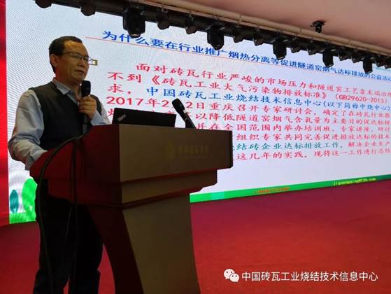 会上专家们通过不同视角,对我国装配式建筑的现状、未来装配式建筑发展的方向、装配式建筑与烧结砖的结合、国内外装配式建筑的对比等,为大家做了深入浅出的剖析讲解,会场不时爆发出热烈的掌声。通过他们的报告,使在场代表对装配式建筑有了更深的认识和更新的思路。而后,姬广庆老师做《烟热分离等促进隧道窑烟气达标排放技术应用的总结》,姬老师在发言对中心多年来在烟热分离与促进隧道窑烟气达标排放方面所做的工作,取得的成绩给大家做了全面而详细的汇报。