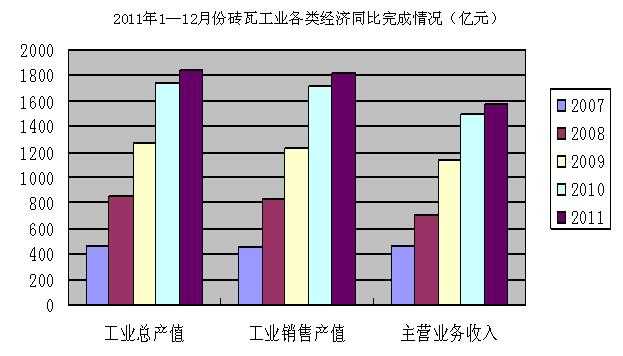 瓦的产量累计增长56.7%,比上年同期增加了17.8个百分点。其中山东、河南、广西、重庆和甘肃同比增幅在96%以上,重庆和甘肃出现较大增长幅度。2011年产品销售形势较好,工业产品销售率完成98.35%,比上年同期增加0.11个百分点。