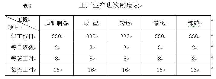 经过认真筛选,主要生产装备全部选用国产定型设备,其中关键设备——半成品的上下架和碳化装置,采用我院为烧结砖厂研发的单层干燥系统,从而使整个生产线实现自动化,部分设备需要我院联合有关装备制造厂家重新开发。设备见一览表(表3)。