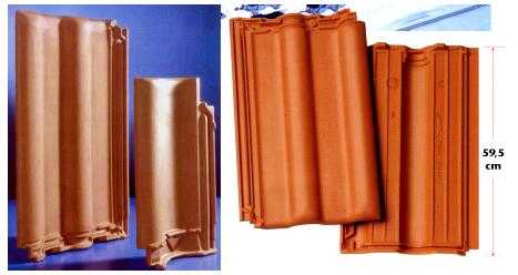 为了更方便地安装太阳能收集板以及屋面瓦的铺设,某西欧公司专门开发了在特制的烧结屋面瓦上直接铺贴上太阳能收集板的组合屋面体系。该种屋面瓦使用炻器质坯体原材料,经喷雾干燥之后压制成型。该种屋面瓦的关键特性是低的吸水率以及低的吸热系数。在铺贴上太阳能收集板后,这种屋面瓦的铺设与普通屋面瓦一样。但是铺设时必须确保每块瓦之间的连接电缆的连通,以及与转换器或是转换箱的电缆连通。在这种组合屋面体系中,更换损坏的太阳能收集板时不需要对整个系统进行修复,仅将损坏的一块更换即可。这种瓦的尺寸相对较大,例如: