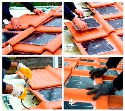 罗宾(Röben)屋面瓦制造工厂专门制造了一种安装太阳能收集板的缩进式屋面瓦,安装后就像在屋顶上开了一个平面的窗户,太阳能收集板就安装在这一平开的窗户上,并在太阳能收集板下铺垫铅质的软垫带条。缩进式屋面瓦与连锁的波形瓦能够实现很好的搭接。