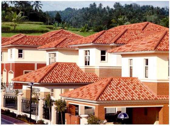 现代烧结屋面瓦是美化建筑物的重要手段,也是解决屋面漏雨、建筑物顶盖保温隔热的重要措施。图55为广州嘉泰公司部分屋面瓦工程的应用效果。