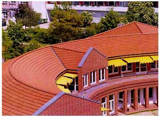 德国还开发出了“太阳能屋面瓦”(Solar energy roofing tile)。这种屋面结构的底部是一层烧结瓦,上部的覆盖层也是一层烧结瓦,在两层瓦之间设置有软管道,液体通过管道内流动,同时被加热。这种太阳能屋面瓦是根据热交换原理设计并工作的,看起来与普通屋面瓦没有什么区别。太阳能屋面瓦仅比普通屋面瓦厚3~4cm,但其上表面与普通瓦屋面在一个平面上,所以太阳能屋面瓦的上部和侧面不需要任何辅助结构件就能与普通瓦连接,丝毫不影响瓦屋面的整体美观效果。由于受到日本福岛核电站的核泄漏的影响,在德国禁止利用核能的呼声日渐高涨,核电站将会被逐步淘汰,太阳能及风能的利用得到了公众广泛的认同和支持。德国太阳能工业协会(BSW)最近公布:“到2020年,太阳能工业的销售量将会增加至少3倍,太阳能发电将会达到至少52GW的装配能力。太阳能工业将会投资至少5%的销售额用于研究和开发。”太阳能的利用不仅在德国是要优先发展的项目,同时来自欧盟的十二个国家一致同意在整个欧洲加速发展利用太阳能的计划。