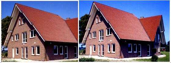 图46西欧现代大型烧结屋面瓦与原传统瓦的比较(照片来自《国际砖瓦工业》2003)