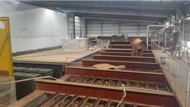 这里的焙烧窑断面4.6m,共27个车位。干燥室17个车位。预干燥系统利用干燥室端空余出来的位置而建。共10个车位长。取焙烧窑余热对预干燥室内停放的砖坯进行预干燥。供风形式除顶部供热风外,利用焙烧窑窑顶的余热锅炉输送蒸汽到预干燥室内分布在两侧墙壁上的暖气片。整个系统布局与外观结构如下图: