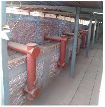 上述两家生产线的干燥与焙烧都是由一条干燥室(76.2×3.6m)和一条焙烧窑(115.8×3.6m)组成。干燥介质是用风机抽取的焙烧窑产生的烟热,干燥室排潮外接脱硫塔。