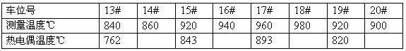 图中显示烧成温度并不高,不超过900℃,这是因为窑炉以全负压烧成,热电偶显示温度与砖坯温度有差别。笔者使用测温仪测量了高温区车位砖坯的实际温度,与有热电偶的车位进行了比较。如表3。