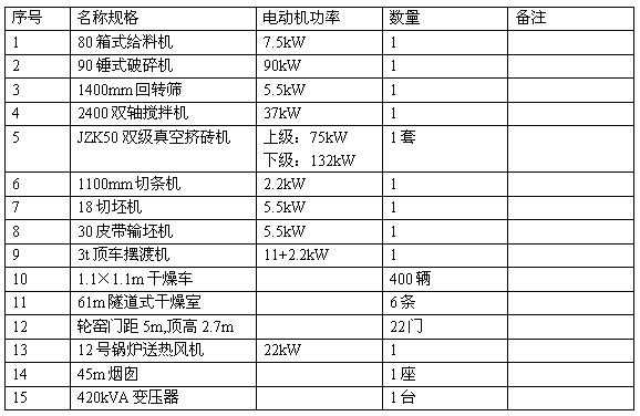 目前,因空心砖市场需求较少,不便组织规模化生产,因此,企业决定利用原50双级真空挤砖机成型、切条和切坯机组,建立一条独立的空心砖生产线。作为本次技改的补充,以利灵活安排空心砖的生产。