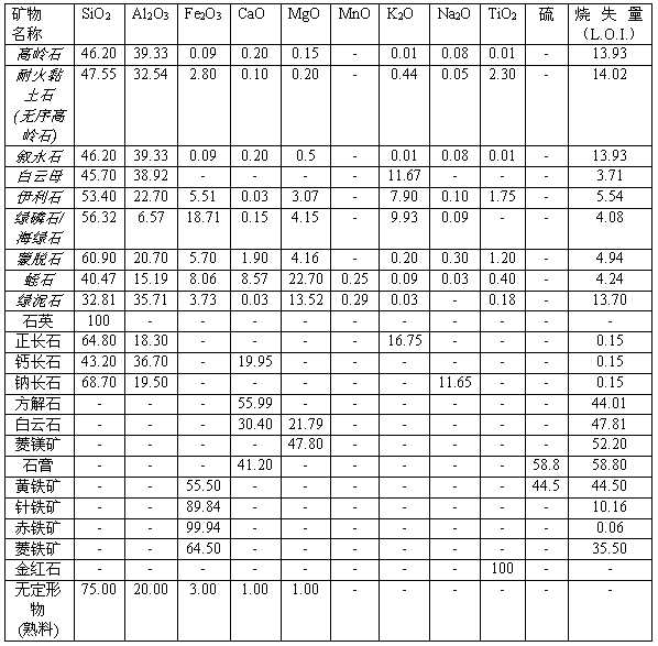 每一个烧结砖瓦厂所使用的原材料中不可能都存在有各种各样的矿物,但也没有完全相同矿物组的两种烧结砖瓦原材料。因为每一个天然矿床多半在变化程度上都有所不同,每一种原材料在所含矿物上都有或多或少的差异,然而,总是在一定的范围内变化,例如黏土矿物,填充性矿物,熔剂性矿物或反应活性较大的矿物成分的含量均有所不同。在各个地质时代的红焙烧色黏土和页岩以及耐火黏土也有其基本相似之处。