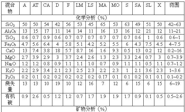 注:表中斜字体为黏土矿物;其余为非黏土矿物。