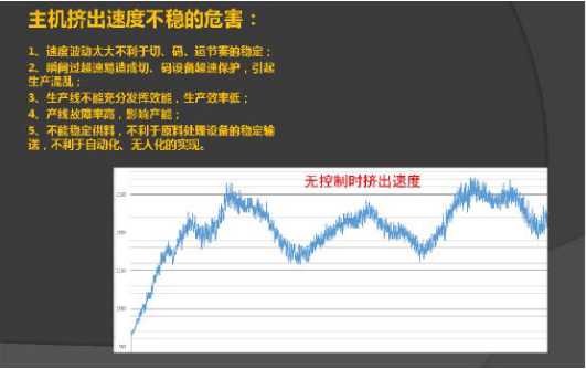 随着烧结砖生产线的规模越来越大,对产量的要求也越来越高。但是挤出机挤出速度的不稳定,泥条速度陡增陡降现象频繁,有时超过了下游设备的应对能力,给生产线下游设备如切、码、运系统设备来了工作节拍的混乱和停机等等,严重地制约了设备产能的发挥,影响着产品的质量。同时也会造成挤出机上下游设备的频繁启停,影响着设备正常、稳定的运转。。