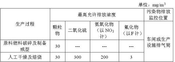 [注:1)窑炉采用水煤浆为燃料,水煤浆的含硫量不得高于1%;水煤浆的含硫量为0.3-1%,必须上脱硫设施。现有企业脱硫效率不得低于70%;新建企业脱硫效率不得低于80%; 2)窑炉采用气和油为燃料,油和气的含硫量不得高于0.5%;油和气含硫量为0.15-0.5%,必须上脱硫设施。现有企业脱硫效率不得低于70%;新建企业脱硫效率不得低于80%; 3)环境敏感区限烧天然气和电; 4)标准限值的确定同时考虑了陶瓷原料中的含硫物质的释放。]