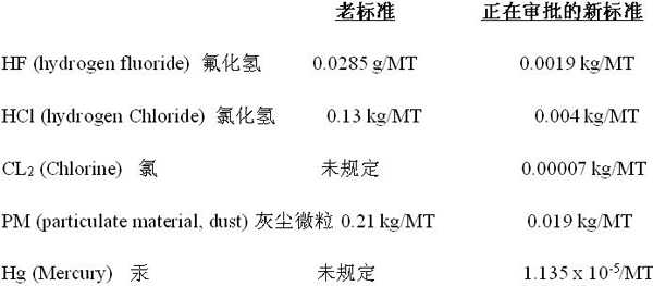 美国的老标准是2003年制定的,新的标准(2014年)已经提交,但还没有经政府批准实行。根据已收集到的资料(张文法先生提供),美国烧结砖瓦行业的排放标准为: