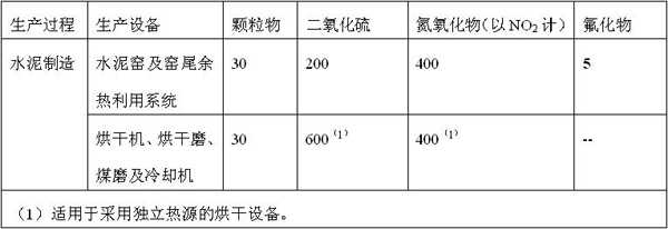表4 水泥工业大气污染物排放浓度限值 单位:mg/m3