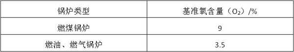 实测的锅炉颗粒物、二氧化硫、氮氧化物、汞及其氧化物的排放浓度折算为基准氧含量排放浓度,各类燃烧设备的基准氧含量规定如下表6示: