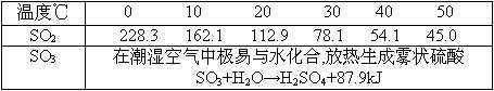 表3:SO2、SO3在水中的溶解度(g/kg水)