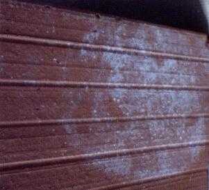 表面泛白、泛霜这两种缺陷的联系在于:在形成过程中都是由于可溶性盐随着水分而迁移到制品(或坯体)表面,由于水分的蒸发,可溶盐沉积在制品表面,形成了这种成品砖表面的污染物。从形成的过程看,往往同一种盐可形成表面泛白,也可以引起泛霜。所不同的是,前者在制品表面上出现后(干燥阶段或焙烧初期)经历了焙烧这一高温过程,形成了不溶性的硅酸盐、硅铝酸盐或是“死烧”石膏,而后者是在出窑后或是在使用中出现,所形成的物质是可溶性的盐类,如碱金属或碱土金属盐类物质。然而,在实际中往往可以观察"到,有严重表面泛白的砖,在使用中也常会出现严重的泛霜(见图1)。