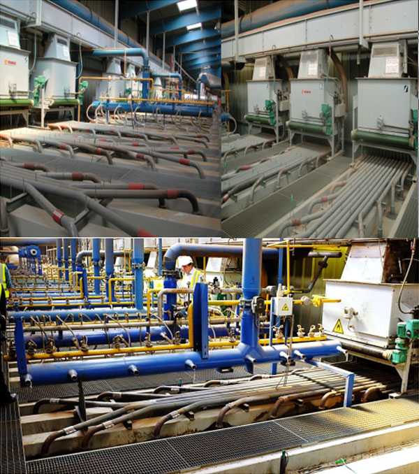 图6 生物燃料燃烧系统以及管道在隧道窑顶上的布置