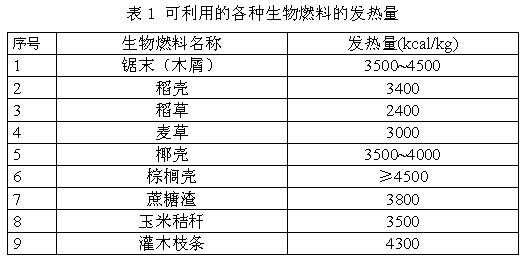 根据法国的实际使用验证,农作物秸秆、稻壳、麦糠、稻草、麦草、椰壳、花生壳、棕榈壳、咖啡壳等都可以使用,只要其最大颗粒不大于5mm即可直接使用。可利用的各种生物燃料的发热量如下表: