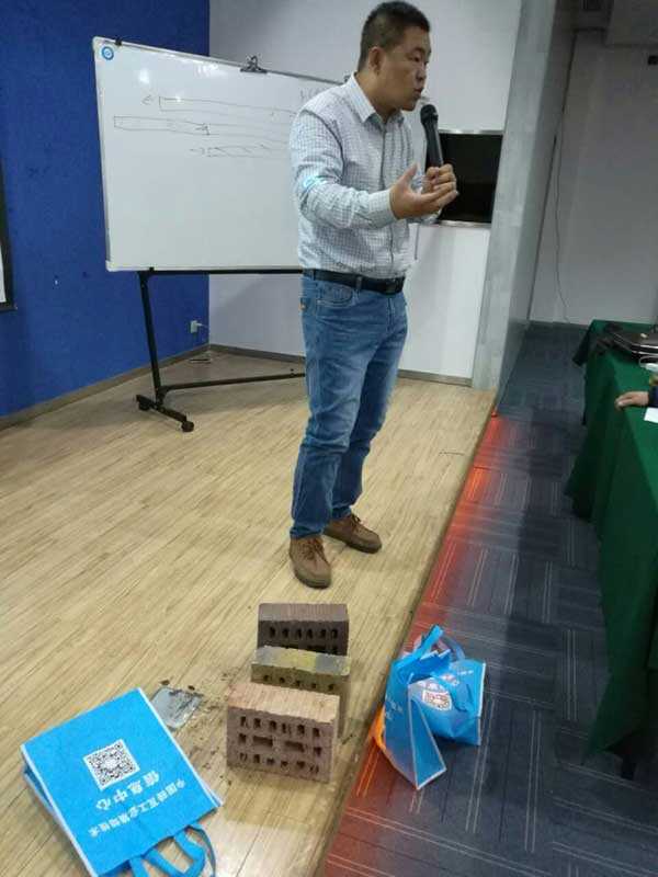 11月10日,虽然天空飘起了蒙蒙细雨,但是仍然阻挡不了广大砖瓦同仁的学习热情。来自广东、广西、湖南、福建等多个省份的六十余位砖瓦企业代表,从各地赶来听课。此期培训班,我们针对南方原材料初始含水率偏高、砖坯干燥等问题,特邀毕业于北京理工大学热力工程系,拥有多年一线实践经验,成功改造多条隧道窑的中国砖瓦网总工程师尹士杰为大家授课。课上,尹老师围绕“烧结砖发展方向及产品的成型干燥处理方法”的主题,通过烧结空心砖、砌块发展趋势;原材料含水率偏高对成型的影响;空气相对湿度较高情况下,砖坯干燥存在的问题及处理方法几个方面,给在场学员做了深入浅出的讲解。尹士杰老师作为2016年度中心新聘请的授课老师,用其风趣幽默的授课风格、通俗易懂的语言、理论联系实践的授课方法赢得了在场学员的阵阵掌声。