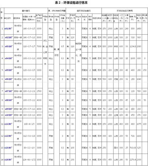 由中国砖瓦工业烧结技术中心公益支持、全国墙材革新工作委员会组织的由中国环境科学研究院等单位组成的专家组,于2016年4月对《砖瓦工业大气污染物排放标准》的修订工作在甘肃省进行了调研,专家组与兰州市皋兰、永登、榆中县的烧结砖企业、省、市、县墙改主管部门、县环保局、省、市墙材协会、环保装备制造企业等共同座谈,征求修订建议。对兰州市14家隧道窑企业承诺不作为各级环保部门执法依据的前提下,为环保标准的修订进行实际工况的检测,随后连续对2016年全年进行真实检测,基本情况如下。