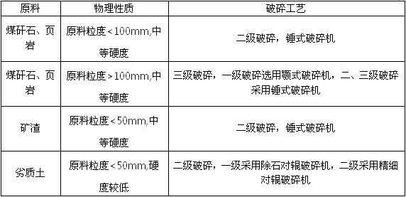 部分原料破碎选用设备表 表3.2
