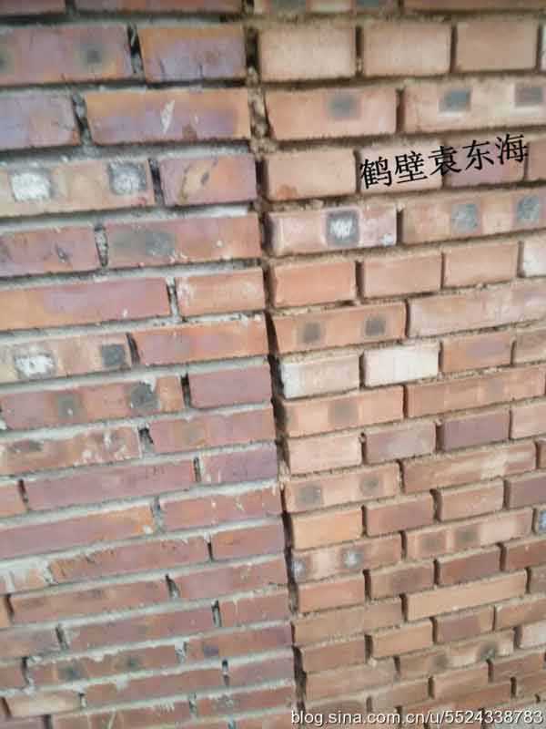 观察用户使用情况时发现,墙体的底部和上部变色较中间部位严重。这种现象是底层砖回潮和顶层砖雨淋有关;同一生产日期的砖在不同墙体中变色的程度不一;砖变色程度与砌筑砂浆的配比有很大关系,即:砂浆中水泥使用量越高,砖的颜色变化愈加严重,当使用黏土砂浆时,颜色变化轻微(如图)。对水泥的调查发现,为当地一家规模不大的建材企业生产。
