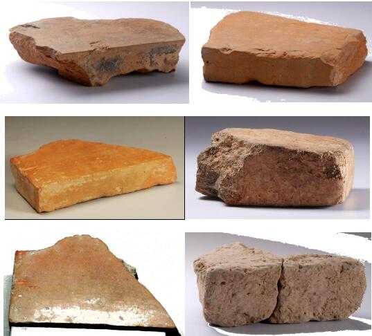 两河流域以及印度河流域的发现的烧结砖据文献记载距今约为4000~5000年历史。图1是印度河流域的古城卡利邦根(Kalibangan)出土的5000年前的烧结砖。