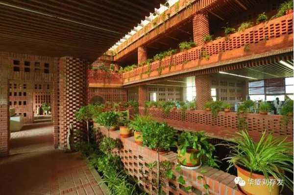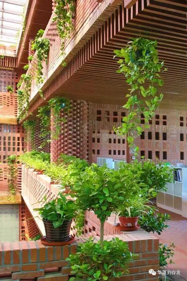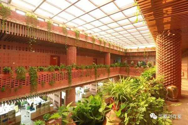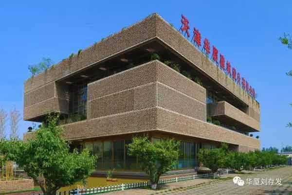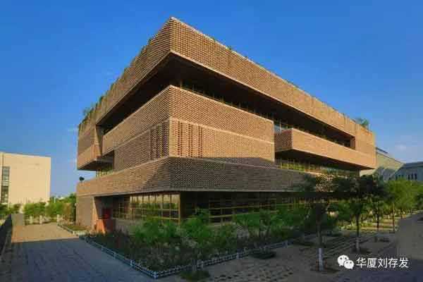 建筑面积2117m²。建筑采取现代建筑语言,通过大片实墙与玻璃的虚实对比以及几何体转换,达到了建筑的形体美,也解决了建筑的遮光、采光问题。建筑借助屋顶植物栽培,中庭瀑布水景、采光顶,室内大面积绿植,也创造了优美环境。同时,将千百年来古老、传统,不变质、不变形,不褪色,没有维修费用的红砖融入现代建筑中。红砖经过人工精致组合,或出挑,或镂空,结合清水混凝土,使看似传统的红砖砌筑的建筑细部,更加丰富精美,为现代建筑增添了新的视觉符号,提升了建筑的外观装饰的审美情趣。更具特色的是建筑的空调设计,在夏季直接将地源冷水进入地盘管循环;地下消防水池水与室内瀑布结合形成水帘,达到了降温的目的,也满足了室内舒适度要求。建筑还利用太阳能光伏发电技术、围护结构保温节能技术等,使该建筑达到了三星级绿色建筑设计标准,建筑能耗超低,近于零能耗。