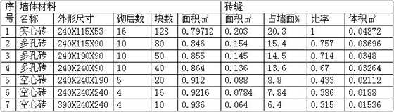 5、由于砌筑时“灰缝饱满度”不可能是100%,特别是空心砖,孔洞沿墙的走向水平放置,竖直灰缝中的砂浆更少得可怜。所以表中所列“砖缝体积”远远大于砌筑水泥砂浆的实际使用量。