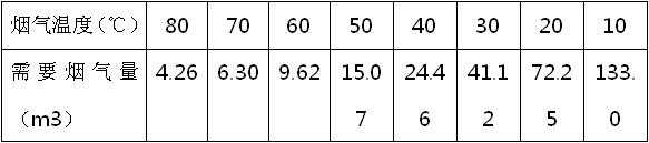 表2列出了在不同温度下,每带走一公斤水分所需要的烟气量,同样从表中可以看出,当排烟温度为70℃时,每带走一公斤水仅需约6立方米烟气,而当排烟温度为20℃时,带走一公斤水则需要70立方米的烟气,两者相差10倍以上。