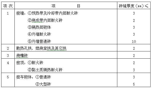 表1 隧道窑砌体砖缝厚度