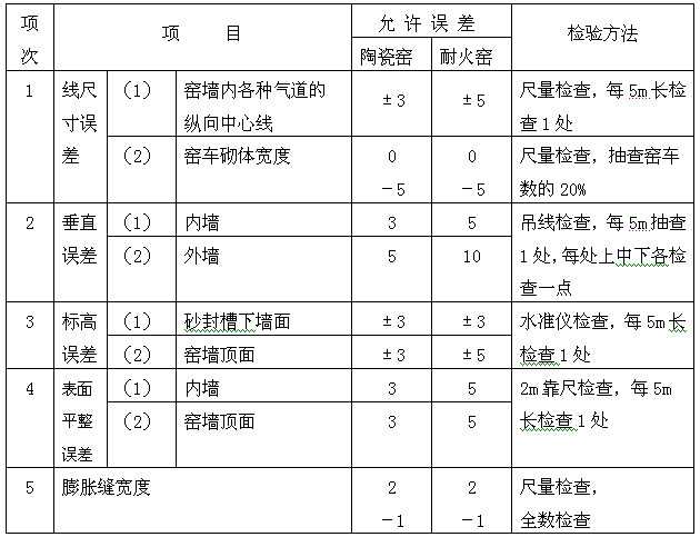 表2 隧道窑砌体的允许误差和检验方法